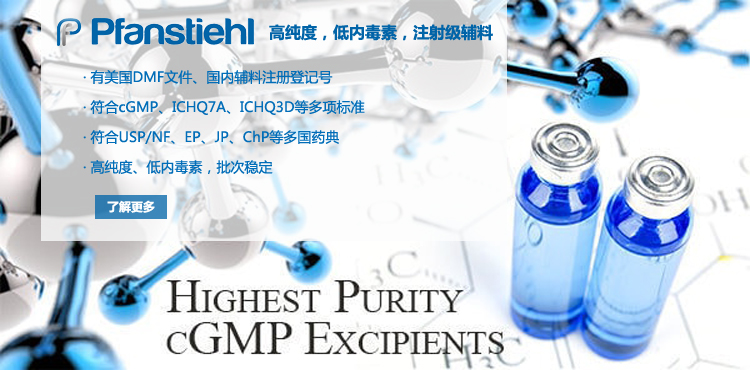 “熱烈祝賀Pfanstiehl的注射級甘氨酸Glycine(G-140)喜獲CDE登記號F20250000403, 這是Pfanstiehl產品獲得的第18個CDE登記號!”甘氨酸在醫藥輔料制劑中應用廣泛,, 可作為緩沖劑,增溶劑,穩定劑等,具有諸多優勢。Pfanstiehl秉承一貫高品質理念,為滿足全球生物制藥行業對于高品質甘氨酸的需求,隆重推出的注射級甘氨酸Glycine (G-140), 具有超高純度,超低內毒素,超低金屬殘留的特點,單獨檢測29種金屬離子,并且新增DNA,RNA,DNA酶,RNA酶和脂肪酶,亞硝酸鹽等多項質量指標的檢測,符合多國藥典規定(USP, EP, BP, JPE, ChP),可用于生物治療性藥物和疫苗的生產。產品信息:· 產品名稱:Glycine, High Purity, Low Endotoxin, Low Metals, USP, EP, BP, JPE, ChP (G-140)· 中文名稱:甘氨酸· 分子式:C2H5NO2· 分子量:75.07 g / mol· CAS號:56-40-6· 產品貨號:G-140產品特點: · 超高純度,超低內毒素,超低微生物含量,超低金屬雜質殘留· 質量指標新增DNA,RNA,DNA酶,RNA酶,脂肪酶和亞硝酸鹽檢測· 符合多國藥典:USP, EP, BP, JPE, ChP· 符合ICH Q3D標準· 符合GMP標準· 已獲DMF和CDE登記號 產品應用:· 緩沖劑· 穩定劑· 增溶劑如果您對Pfanstiehl注射級別Glycine G-140感興趣,歡迎聯系Pfanstiehl 中國區代理商北京西美杰科技有限公司獲得如下詳細的產品概況說明文件和測試樣品。Pfanstiehl Inc.最新產品系列如下,歡迎聯系北京西美杰科技有限公司獲取100g裝免費樣品。北京西美杰科技有限公司為Pfanstiehl中國代理,為客戶提供完善的技術支持與售后服務。歡迎撥打西美杰客服電話400-050-4006或者登陸網站www_xmjsci_com.703rcs.cn了解更多信息。 更多>
